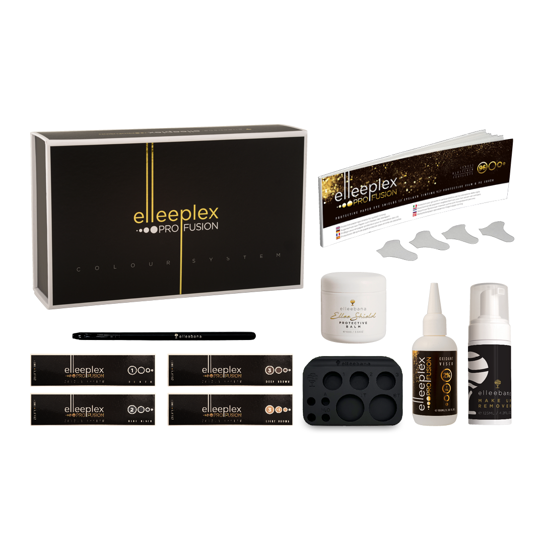Elleeplex Profusion offers a fantastic range of essential salon tinting needs to perform lash & brow tinting services. The Mini Tint Kit colours include Elleeplex Black, Elleeplex Blue Black, Elleeplex Deep Brown, Elleeplex Light Brown, Paper Eye Shields, Elleebana Make-Up Remover, Ellee Shield, Crème Oxydant, Ellee-Palette and an Application Brush in a beautifully presented kit box keepsake. The essential pack will set you up to style your clients lashes and brows with ease.